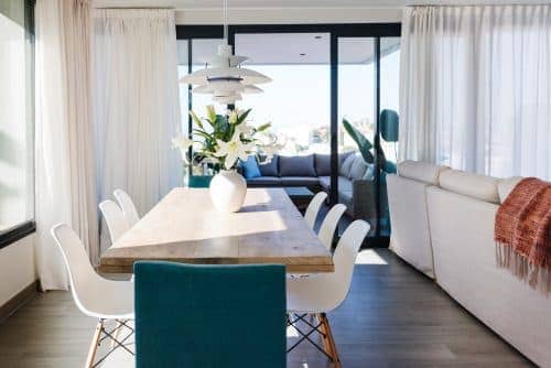 Design: Scandinavian and mediterranean mix with coastal style neutral tones. Grey, all shades of blue and turquoise with details in natural wood, cotton and linen. The client was looking for good quality as well as a functional and comfortable home with a luxurious feel.