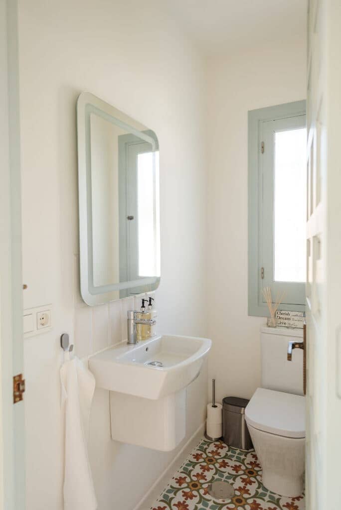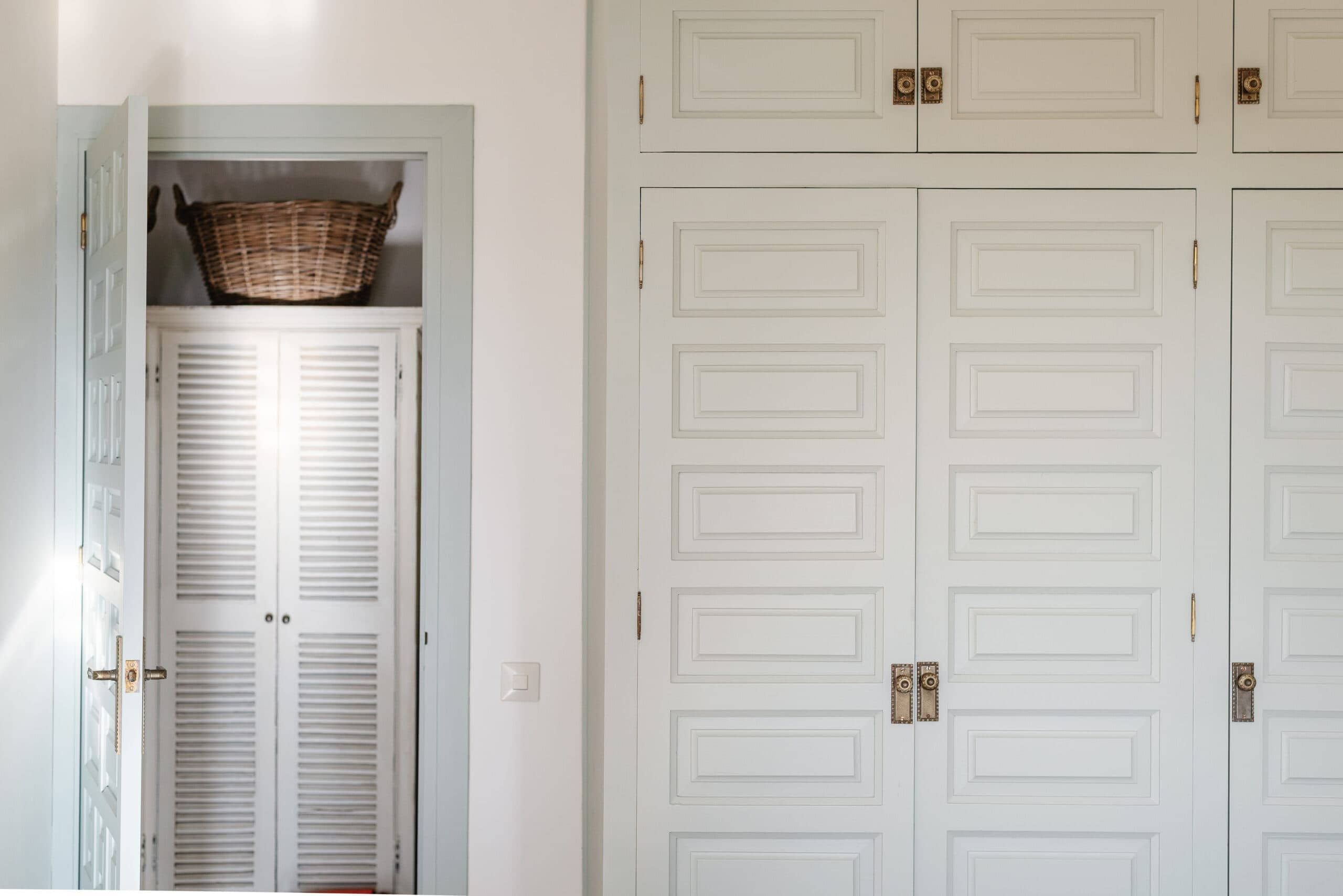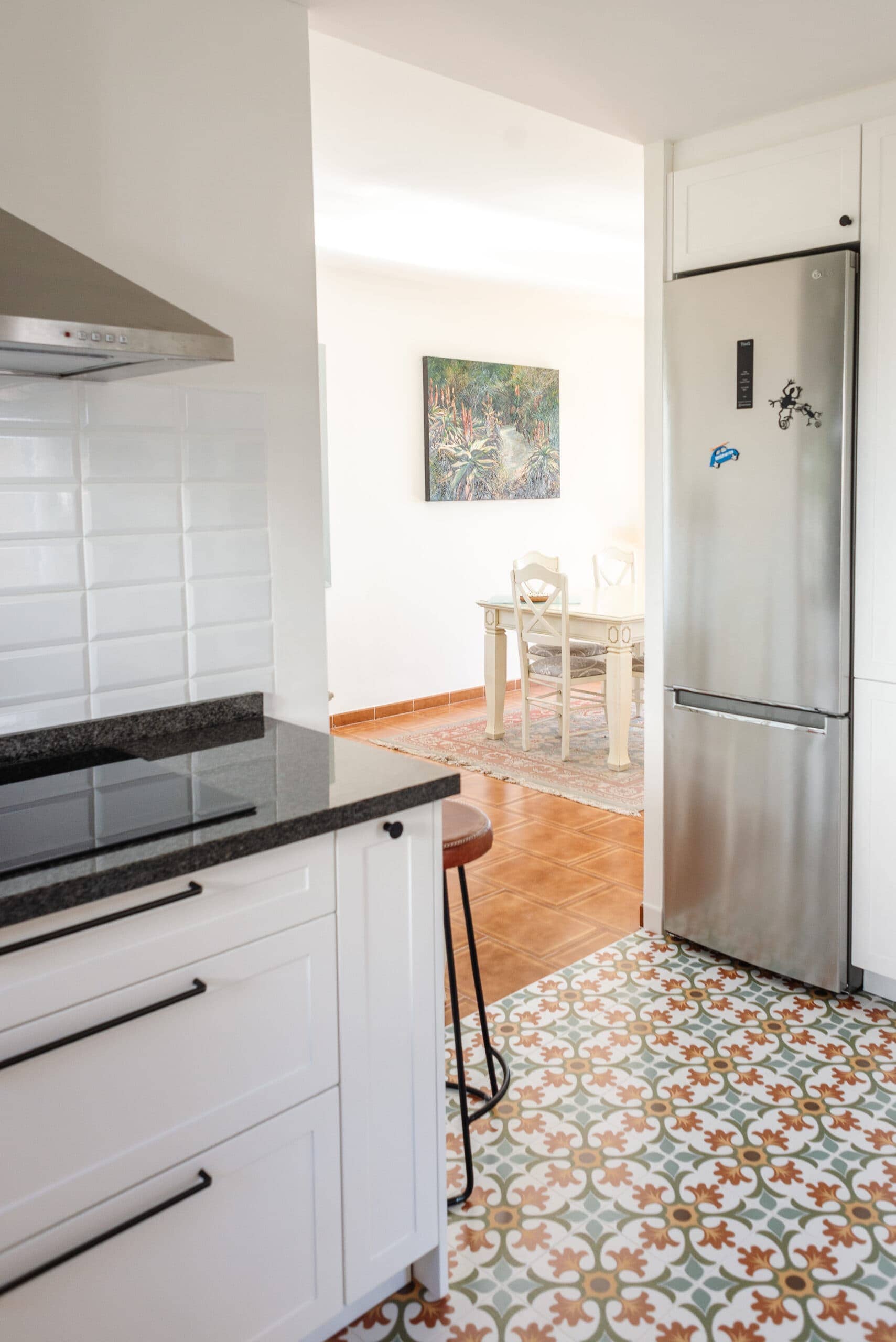 Den uppdaterades med ny el, rörmokeri och ventilation. Badrummet totalrenoverades, men dörrar och fönster behölls och i vardagsrummet installerade vi ett minikök. Den tidigare ingången under loftet blev en garderob utanför badrummet och den överdimensionerade öppna spisen känns nu helt perfekt i rummet.